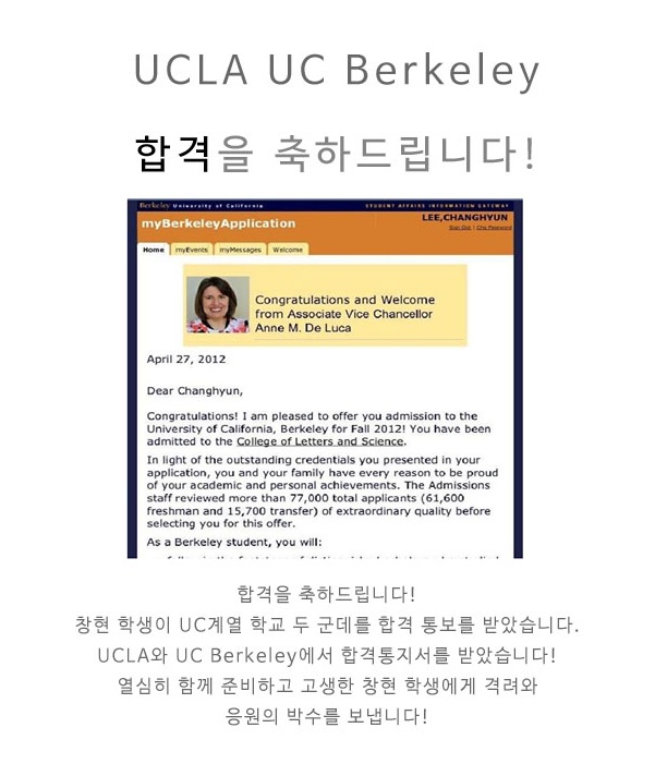 [합격장] UCLA,UC Berkeley 합격을 축하드립니다~